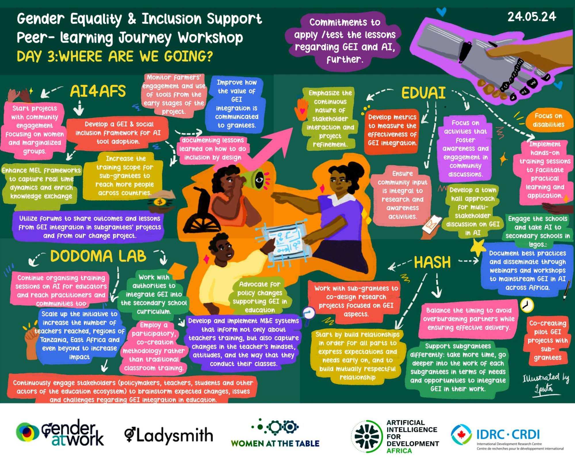 In this final blog in the “Keeping the light on: Reflections on GEI and AI in Africa” series, the Peer Learning Journey facilitators Ethan Gilsdorf, David Kelleher, Khanysa E. Mabyeka, Lucía Mesa Vélez and Marie-Kate Waller share their learning from accompanying AI4D hubs and labs across the two-year PLJ process.