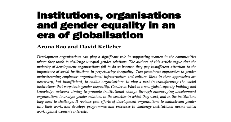 Institutions, organisations and gender equality in an era of globalisation